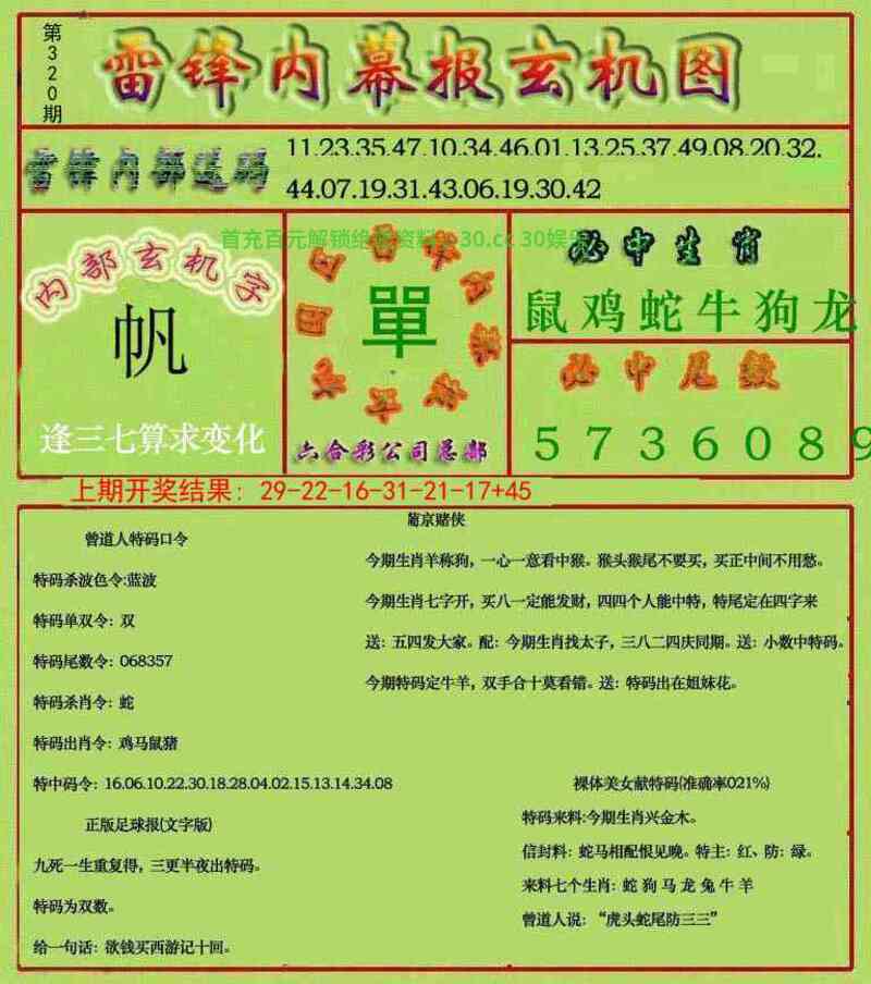 306期:男女两肖男肖+鸡蛇』开:牛17准